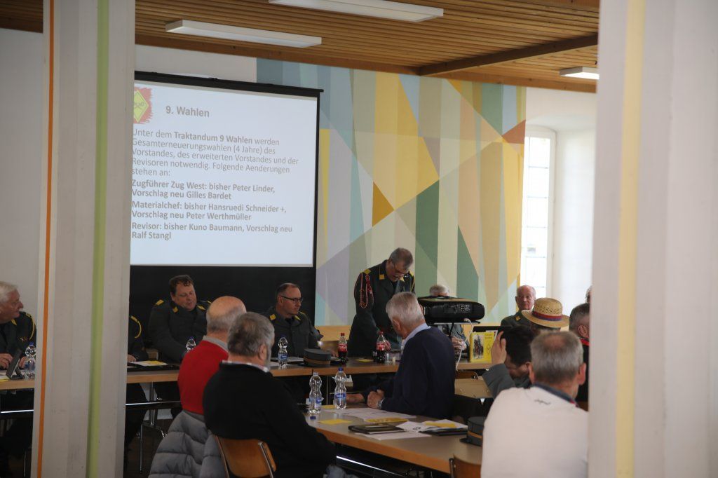 Am 24. Februar leitete deren Präsident Beat Huber in der Kaserne Aarau die Generalversammlung. So wurde den verstorbenen Ehrenmitgliedern Hansruedi Schneider, Lenzburg, Franz Widmer Zofingen und dem ehemaligen Vorstandsmitglied Christine Hug, Tscheppach gedenkt. Als Zugführer West wurde Gilles Bardet und als Materialchef Peter Werthmüller gewählt. Thomas Deiss, Herznach wurde zum Feldweibel und Stephan Künzli, Nottwil zum Feldweibel befördert sowie neue Mitglieder aufgenommen.